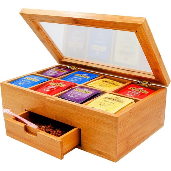 Description | bamboo tea box tea bag organizer with drawer for hot selling |
